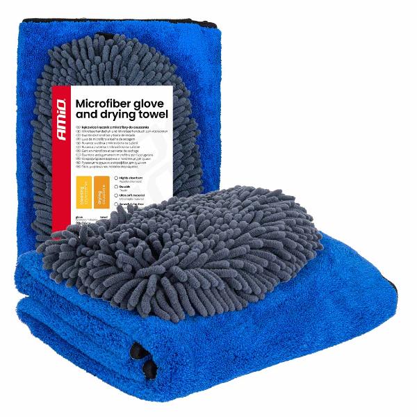 AMIO 04489 - GUANTE DE MICROFIBRA Y TOALLA DE SECADO 94/800GSM 20X26/60X9